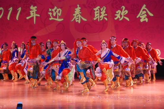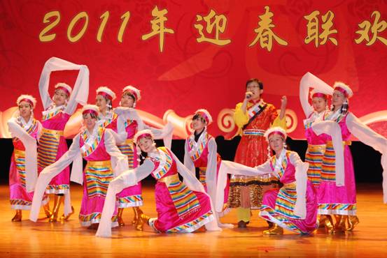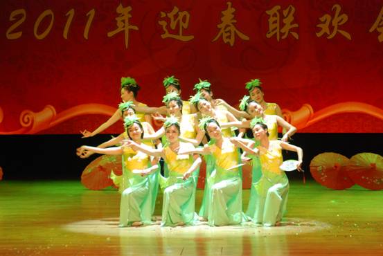 八室、研究生會、條件保障部等部門歌舞串燒《歡天喜地賀新年》—《青春舞曲》