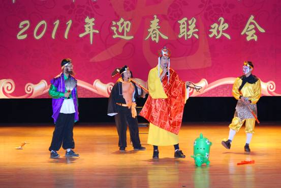 文藝演出中,由八室、研究生會、條件保障部等部門帶來的歌舞串燒《歡天喜地賀新年》拉開了聯(lián)歡會的大幕;十一室的情景劇《大話西游之重返神州》結(jié)合日常工作并用當(dāng)下各種網(wǎng)絡(luò)流行元素演繹了唐僧師徒四人現(xiàn)代搞笑版新西游記;離退辦男聲小合唱《哎喲!媽媽》展現(xiàn)出了老同志們的健康、積極、樂觀的心態(tài);婦聯(lián)姑娘們的民族舞蹈《歡樂啊噻噻》不僅跳出了喜迎新年的喜悅,更跳出了青春的激情;公司的配樂詩朗誦《我的祖國》,深情歌頌了祖國的經(jīng)濟(jì)繁榮,社會的和諧穩(wěn)定,人民的幸福安康;二室的小品《武林“峰會”》以電視劇《武林外傳》為藍(lán)本,結(jié)合研究室的科研情況,用詼諧幽默的語言再現(xiàn)了一部現(xiàn)場版輕松喜劇;九室的舞蹈《不如跳舞》,男、女生們用不同的韻律搏擊操和運(yùn)動舞蹈,跳出了青年科技工作者的激情活力;三室的伴舞小合唱《新年快樂》,歡快的舞步和精彩的演唱仿佛讓大家聽到了那清脆的新年鐘聲。四室情景魔術(shù)劇《魔幻之夜》,演員們通過對平日工作的夸張演繹加之新穎的魔術(shù)穿插表演成為了所有節(jié)目中的亮點(diǎn);離退辦的長綢扇《和諧中國》,用和諧的音符和美好的祝愿舞出了老同志們對實(shí)現(xiàn)祖國強(qiáng)盛的心愿,京劇《沙家浜-智斗》選段近乎專業(yè)的精彩演唱更是展現(xiàn)出離退休同志們晚年生活的豐富多彩。七室的藏族舞蹈《扎西德勒》,通過鮮艷的服飾、整齊劃一的舞步跳出了祖國多民族文化的風(fēng)采,并把聯(lián)歡會的氣氛推向了高潮;五室的三句半《四大才子拜大年》,演員通過與主持人的互動加之巧妙對時下流行語言的運(yùn)用,展現(xiàn)了研究所青年的才氣。六室的器樂伴唱《老男孩》,通過吉他、電子琴的現(xiàn)場伴奏和時尚絢麗演出,唱出了他們堅(jiān)持夢想的青春無悔心聲;無錫物聯(lián)網(wǎng)中心帶來的舞蹈《春到江南》,不僅勾勒了江南春色那委婉、濃烈之美,更展示了物聯(lián)網(wǎng)中心同仁們的勃勃朝氣;在十室的小品《養(yǎng)海龜》中,一首《故鄉(xiāng)的云》不僅唱出了歸國科技精英們的心聲,更表達(dá)出了他們濃濃的愛國之情;一室現(xiàn)代舞《青花瓷》,展現(xiàn)出新進(jìn)員工們忘我工作之余的風(fēng)采,更給人帶來一種清新、雅致的感受;機(jī)關(guān)同志們帶來的大合唱《好運(yùn)來》,不僅祝愿天下善良的人們天天好運(yùn)來,更表達(dá)了對微電子所明天的良好祝愿。