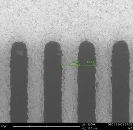 圖二 線寬線距15um/15um的光刻膠圖形