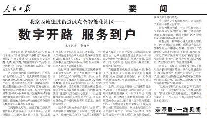 圖為《人民日?qǐng)?bào)》(走基層·一線見聞欄目 2012年02月13日 15 版)和《今日德勝》社區(qū)報(bào)對(duì)易醫(yī)箱在德勝街道智能化社區(qū)建設(shè)中應(yīng)用的報(bào)道