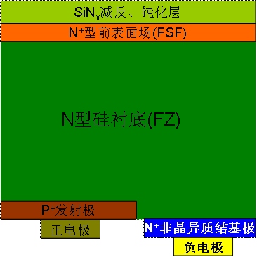 圖2:異質(zhì)結(jié)背接觸太陽(yáng)電池的截面結(jié)構(gòu)圖