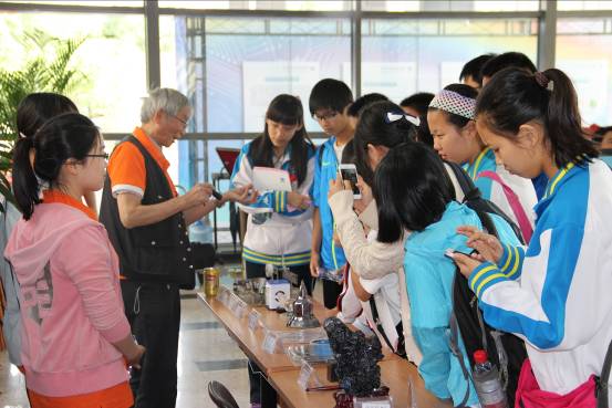 陳寶欽研究員(左2)為中學生講解“硅”的知識