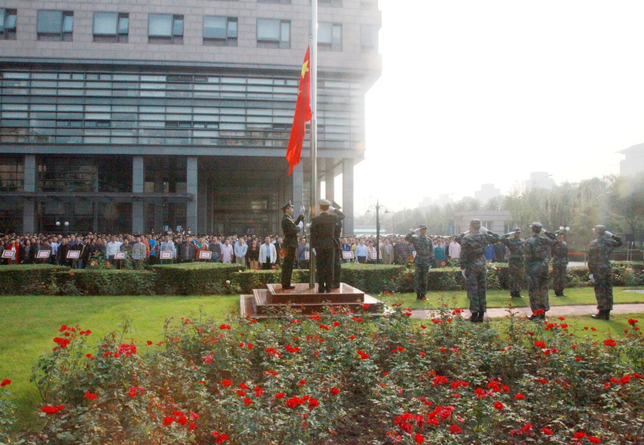 隨著李培金書記發出的出旗號令,英姿颯爽的國旗護衛隊邁著鏗鏘有力的步伐、精神抖擻地走向升旗臺,莊嚴的國歌響起,鮮艷的五星紅旗緩緩升起,大家莊嚴凝視,向國旗行注目禮。