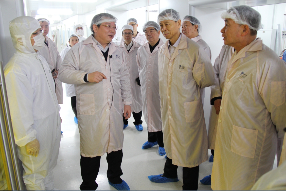 陳曉光一行在微電子所所長(zhǎng)葉甜春,黨委書記李培金,副所長(zhǎng)周玉梅、陳大鵬、劉新宇的陪同下,實(shí)地參觀了集成電路先導(dǎo)工藝研發(fā)中心、微電子設(shè)備技術(shù)研究室凈化工藝間,觀看了微電子所科研工作進(jìn)展、科技成果轉(zhuǎn)移轉(zhuǎn)化展示,聽取了葉甜春關(guān)于微電子所“創(chuàng)新2020”與“一三五”規(guī)劃、核心科技成果、知識(shí)產(chǎn)權(quán)產(chǎn)出、科技成果轉(zhuǎn)移轉(zhuǎn)化、中科院EDA中心、中國(guó)物聯(lián)網(wǎng)研發(fā)中心等方面的情況匯報(bào)。
