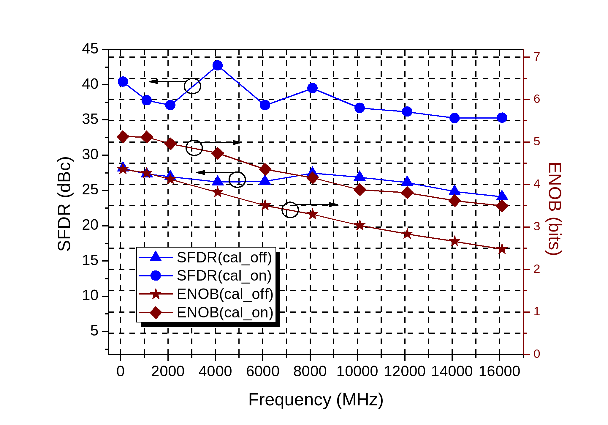 30Gsps 6bit ADC芯片面積為3.9mm x 3.3mm ,采用4路交織技術,子ADC采用自主創(chuàng)新的折疊內(nèi)插架構。芯片內(nèi)部集成三項誤差校準電路,通過與FPGA配合可實現(xiàn)通道之間的自動校準。芯片輸出采用24路高速串行數(shù)據(jù)接口,支持在30GSps采樣率下全速率輸出。芯片的最高采樣率為30Gsps,每秒可產(chǎn)生300億次模數(shù)轉換,總功耗為8W。該款芯片的-3dB帶寬為18GHz。在30Gsps采樣率下,低頻有效位達到5bit ,高頻有效位大于3.5bit ,無雜散動態(tài)范圍(SFDR)大于35dBc。