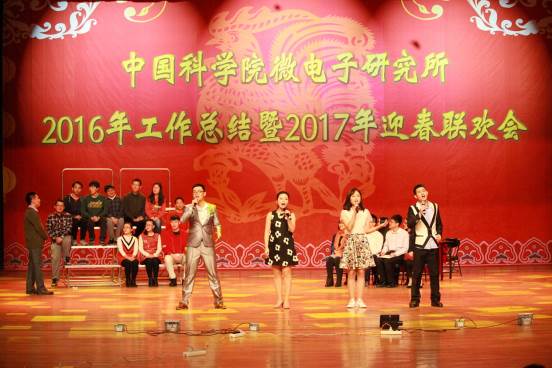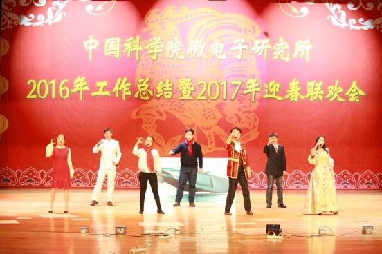 迎春聯(lián)歡會(huì)在歡快的節(jié)奏中拉開了序幕,所領(lǐng)導(dǎo)班子成員登臺向全所職工、研究生和離退休同志拜年,致以節(jié)日的問候和美好的祝愿。演出堅(jiān)持簡樸、節(jié)儉的原則,21個(gè)節(jié)目均由各黨支部、分工會(huì)、工青婦組織、物聯(lián)網(wǎng)中心、昆山分所和研究生會(huì)自編自導(dǎo)自演。研究生會(huì)的開場舞《中國范兒》點(diǎn)燃了全場的熱情;EDA中心的配樂詩朗誦《揚(yáng)帆十三五,開啟新征程》、汽車電子中心的音樂情景《美好車生活》,描繪了科技進(jìn)步的美好藍(lán)圖;機(jī)關(guān)黨支部的歌伴舞《天邊》,李培金書記用情韻悠長的歌聲詮釋了遼闊草原、蔚藍(lán)天空的壯美景色;感知中心的舞蹈《斗牛士》、健康電子中心的舞蹈《進(jìn)擊的二次元》、高頻高壓中心的舞蹈《小雞小雞舞》、通信中心的舞蹈《奇幻之旅》展現(xiàn)了微電子人的蓬勃朝氣;先導(dǎo)中心的歌曲I Do Believe、動(dòng)力公司聯(lián)合黨支部的歌曲串燒《年輕的朋友來相會(huì)》用優(yōu)美的旋律重現(xiàn)經(jīng)典;存儲器中心的歌伴舞《隱形的翅膀》、微電子重點(diǎn)實(shí)驗(yàn)室和高頻高壓中心的歌曲《不忘初心》用美妙的歌聲滋潤了觀眾的心田;封裝中心的小品《“芯”甄嬛傳》、設(shè)備中心的相聲《量子力學(xué)及廣義相對論在相聲中的指導(dǎo)及應(yīng)用》,用詼諧幽默、寓教于樂的語言為觀眾帶去歡樂;所團(tuán)委的戲曲《天女散花》、昆山分所的戲曲《牡丹亭?游園》使大家領(lǐng)略了國粹的魅力;物聯(lián)網(wǎng)中心的快板《誰不說咱中心好》,用說唱形式展示了中心的工作進(jìn)展;所婦委會(huì)的舞蹈《傣家雨林》舞姿曼妙、美不勝收;離退休黨總支的小合唱《映山紅》《我和我的祖國》、硅器件中心的大合唱《強(qiáng)軍戰(zhàn)歌》《歌唱祖國》道出了微電子人對祖國的深切熱愛和無限忠誠。精彩紛呈的文藝節(jié)目,將現(xiàn)場氣氛一次次推向高潮,讓觀眾提前感受到了新春節(jié)日的歡樂氣氛。演出在《難忘今宵》的歡快樂曲聲中落下帷幕。