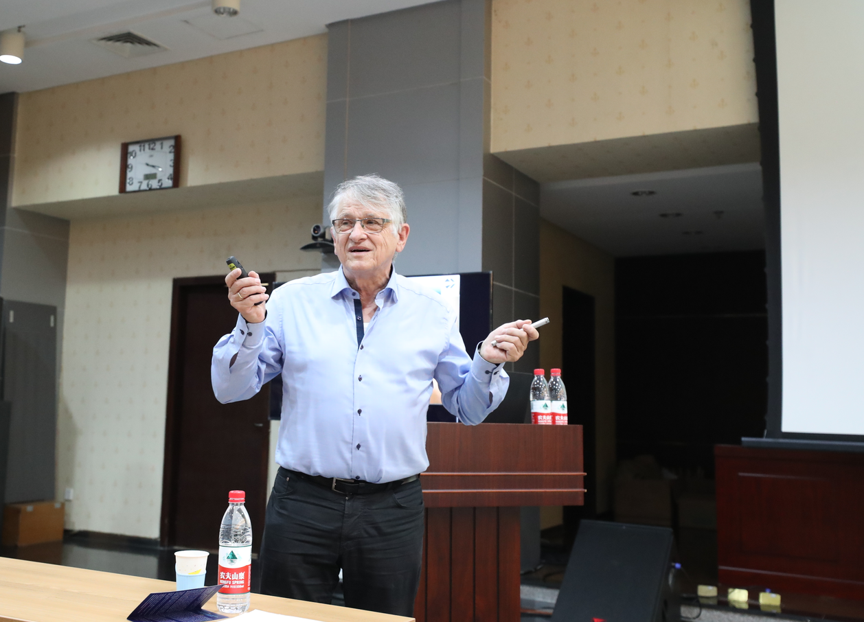 Klaus von Klitzing教授分享了獲得諾貝爾物理學獎的成果。在進行霍爾效應(yīng)實驗時,他觀測到霍爾電阻不按線性關(guān)系變化,而隨著磁場強度的增大而做階梯式變化。進過分析計算,得到其霍爾電阻值為h/(e2f ),h為普朗克常量,e為基本電荷,f為填充因子。這樣在器件上測量量子化霍爾電阻是當今最穩(wěn)定最易于復現(xiàn)的電阻器,與器件參數(shù)無關(guān),量子霍爾電阻成為了電阻定義的標準。此后的瓦特天平借由量子霍爾效應(yīng)與約瑟夫森效應(yīng)精確測得的電阻與電勢,使標準的質(zhì)量、長度、時間等基本物理量間建立聯(lián)系,借助這一方法,就能以非常高的精度測量普朗克常數(shù)的值。在這基礎(chǔ)上,實現(xiàn)了以普朗克常數(shù)重新定義的“千克”單位。與會人員就相關(guān)問題同Klaus von Klitzing 教授進行了深入交流。
