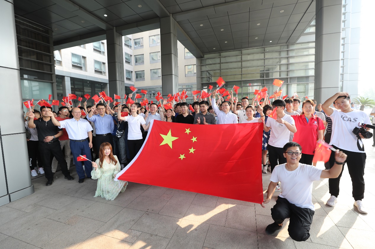 升旗儀式剛剛結(jié)束,一段熟悉的旋律突然響起,“我和我的祖國(guó),一刻也不能分割,無(wú)論我走到哪里,都流出一首贊歌……”。伴隨著悠揚(yáng)歌聲,一些青年職工、研究生手持五星紅旗,唱起《我和我的祖國(guó)》。這是由所團(tuán)委和研究生會(huì)共同策劃組織的“我和我的祖國(guó)”快閃活動(dòng)。歌聲很快吸引了大家的注意力,越來(lái)越多的人匯聚在一起,所領(lǐng)導(dǎo)也參與其中。飽含真情的歌聲,傳遞著微電子人對(duì)偉大祖國(guó)最誠(chéng)摯的熱愛,一面面五星紅旗承載著微電子人對(duì)偉大祖國(guó)的深切祝福。