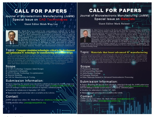 《Journal of Microelectronic Manufacturing》(JoMM,ISSN:2578-3769)旨在發表集成電路制造領域中從基礎研究階段到工業大規模量產階段的研究成果,目前已被Crossref、DOAJ、CNKI、CSTJ、CAS等數據庫收錄。JoMM的發表內容包括但不限于Design、Process、Metrology & Yield Control、Packaging、Materials、Equipment 等方面。近期,JoMM出版了第三卷第二期。