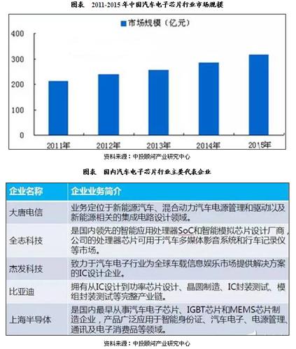 中投顧問在《2017-2021年中國汽車芯片行業深度調研及投資前景預測報告》中提到,汽車產業60%-70%的技術創新都是由汽車電子技術推動的,而芯片是設備智能化的核心。隨著汽車智能化、車聯網、安全汽車和新能源汽車時代的到來,汽車芯片的使用將更加廣泛。