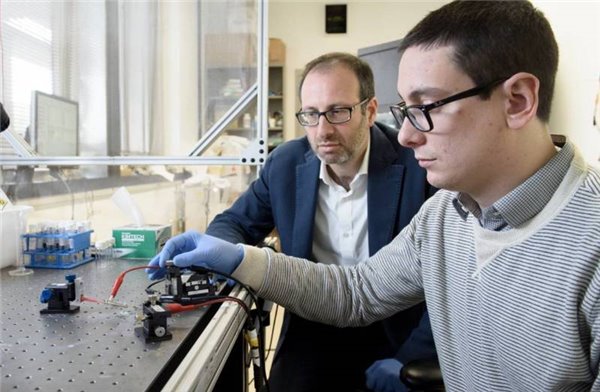 Alberto Salleo,材料科學(xué)與工程學(xué)副教授,研究生Scott Keene在確知用于神經(jīng)網(wǎng)絡(luò)計(jì)算的人工突觸的電化學(xué)性能。他們是創(chuàng)造這一新設(shè)備團(tuán)隊(duì)的成員。
