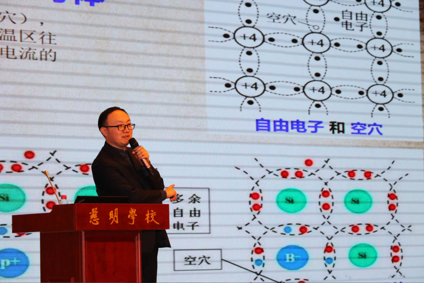 4月30日,由微電子所青促會小組、微電子所團委、科教融合中心共同發(fā)起組織的“科普志愿行——青年科學(xué)家進校園”第一期報告會在山東泰安肥城市慈明學(xué)校明德講堂舉行。微電子所第二屆科普創(chuàng)新大賽一等獎的兩位獲得者:中科院青促會會員、高頻高壓中心副研究員王盛凱,高頻高壓中心工程師韓超為慈明學(xué)校500余名師生帶去了一場別開生面的科學(xué)報告會,帶大家走進了神奇的科學(xué)世界。