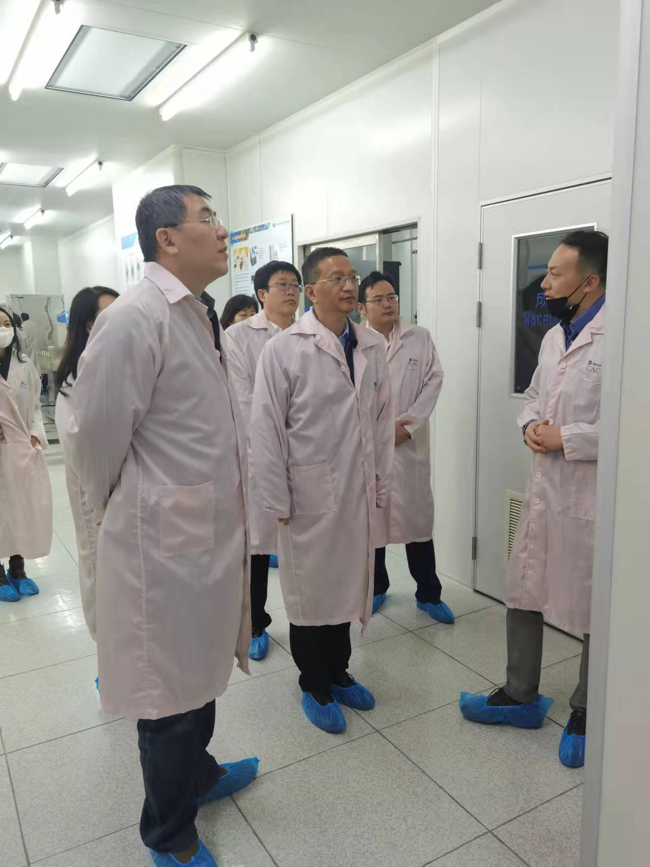 王平一行參觀了集成電路先導工藝線、微電子儀器裝備研發工藝線,并同微電子所相關人員開展座談交流。