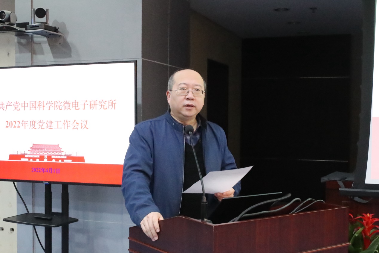 4月1日,微電子所召開2022年度黨建工作會議。黨委書記、副所長(主持工作)戴博偉,黨委副書記、紀委書記趙志剛,副所長王文武、曹立強出席會議。所黨委委員,所紀委委員,所屬各黨總支、黨支部委員共70余人參加了會議。趙志剛主持會議。