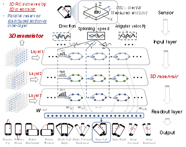 圖1. 三維儲(chǔ)備池系統(tǒng)實(shí)現(xiàn)動(dòng)態(tài)手勢(shì)識(shí)別示意圖