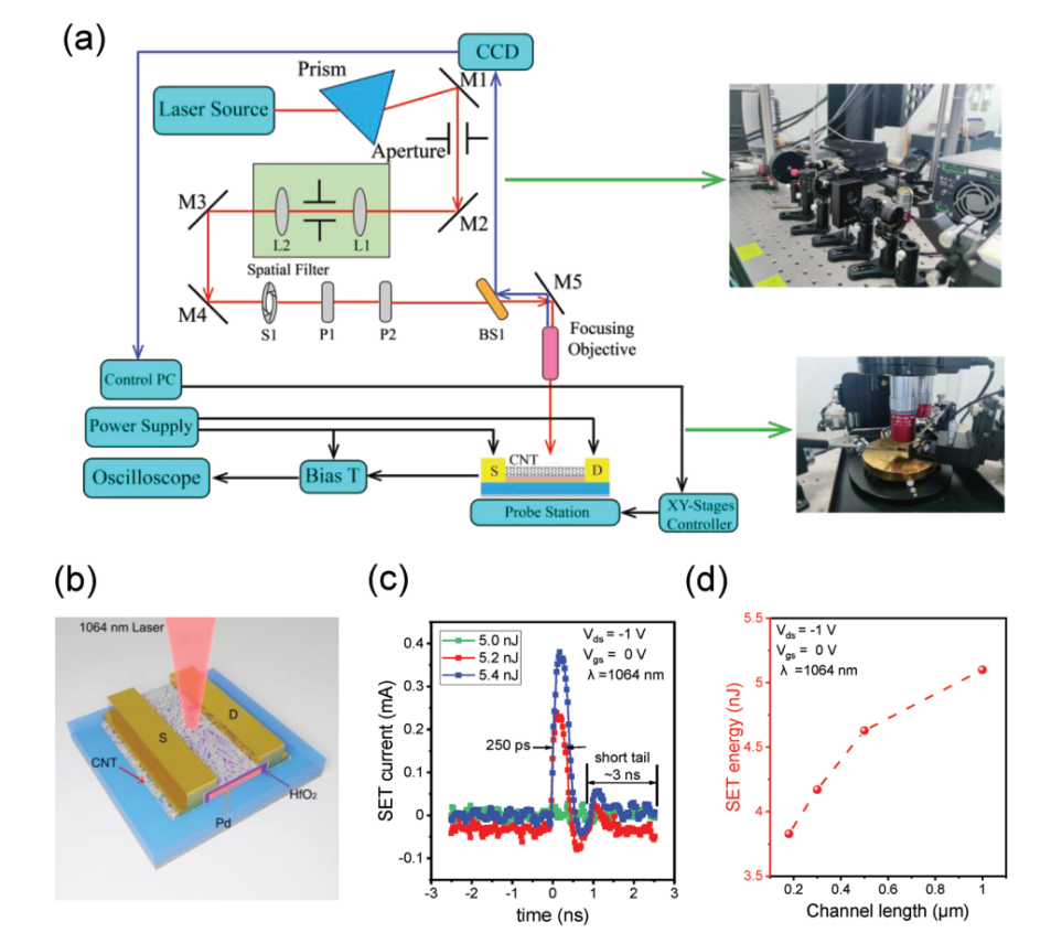 圖1:碳納米管器件與電路的激光模擬單粒子測試結果