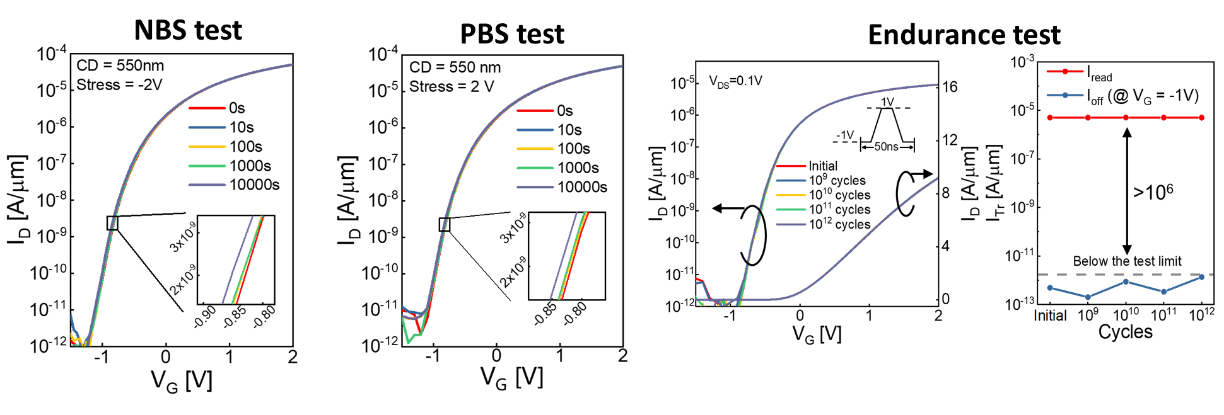 圖2 CAA IGZO FET的可靠性測(cè)試結(jié)果