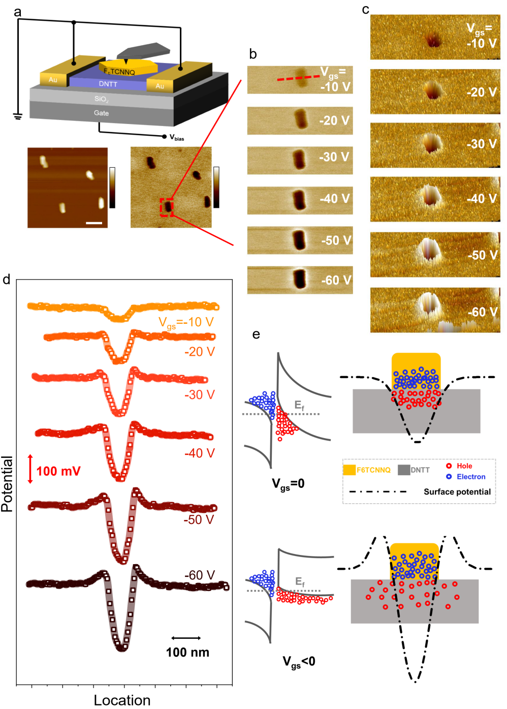 圖二:利用掃描開爾文探針顯微鏡對電荷轉(zhuǎn)移界面的表面電勢的表征分析