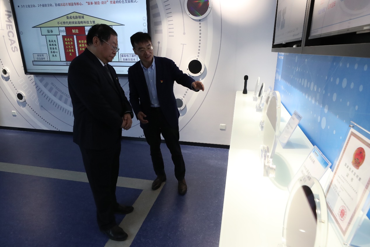 施芝鴻還參觀了微電子所集成電路先導工藝平臺,觀看了微電子所創(chuàng)新成果展。