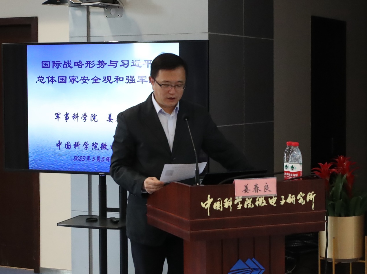 5月5日,微電子所舉辦學(xué)習(xí)黨的二十大精神集中培訓(xùn)第二場(chǎng)報(bào)告會(huì),邀請(qǐng)中國(guó)人民解放軍軍事科學(xué)院研究員姜春良少將作《國(guó)際戰(zhàn)略形勢(shì)與習(xí)近平的總體國(guó)家安全觀和強(qiáng)軍戰(zhàn)略》專題輔導(dǎo)報(bào)告。所領(lǐng)導(dǎo)班子成員,副處級(jí)及以上領(lǐng)導(dǎo)干部、各黨總支、黨支部書記,科研和管理骨干近150余人參加了報(bào)告會(huì)。黨委書記、副所長(zhǎng)(主持工作)戴博偉主持會(huì)議。
