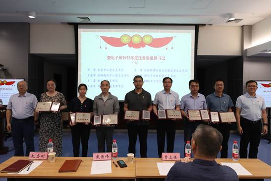 會議表彰了微電子所2022年度先進黨組織、黨建創(chuàng)新獎、優(yōu)秀黨組織書記和優(yōu)秀黨群干部,頒發(fā)了“光榮在黨五十年”紀(jì)念章,戴博偉書記、曹立強副所長為獲獎集體、個人頒獎。