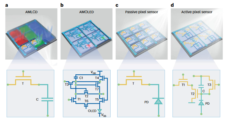 圖2薄膜晶體管在顯示及圖像傳感等應用方面的示意圖