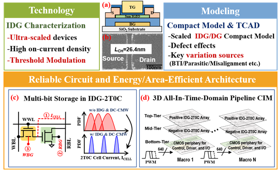 超大規模獨立雙柵(IDG)InGaZnO-FET具有低漏電、操作靈活和三維集成的特點,有望實現高能效和高密度的存內計算。但其復雜的工作原理、增加的變化源和擴大的寄生效應阻礙了器件建模和電路設計。