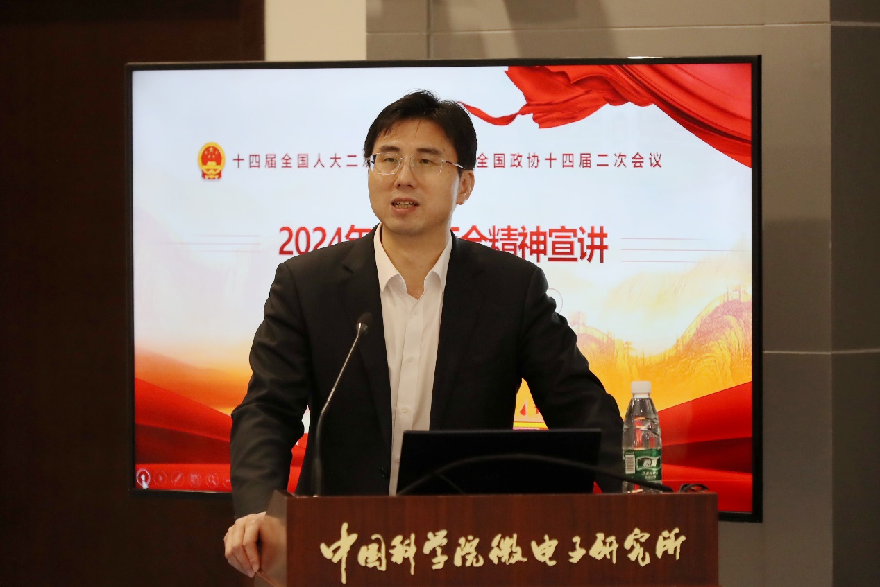 3月12日,微電子所召開黨委中心組(擴大)學習會議,邀請第十四屆全國人大代表、國家杰出青年科學基金獲得者、中國科學院金屬研究所研究員孫東明傳達習近平總書記在全國兩會期間重要講話精神及2024年全國“兩會”精神。中國科學院直屬機關黨委副書記王維佐出席指導。微電子所領導班子成員,所黨委委員,所紀委委員,科研單元負責人,副處級及以上領導人員,各黨總支、黨支部書記近70人參加了會議。微電子所所長、黨委書記戴博偉主持會議。