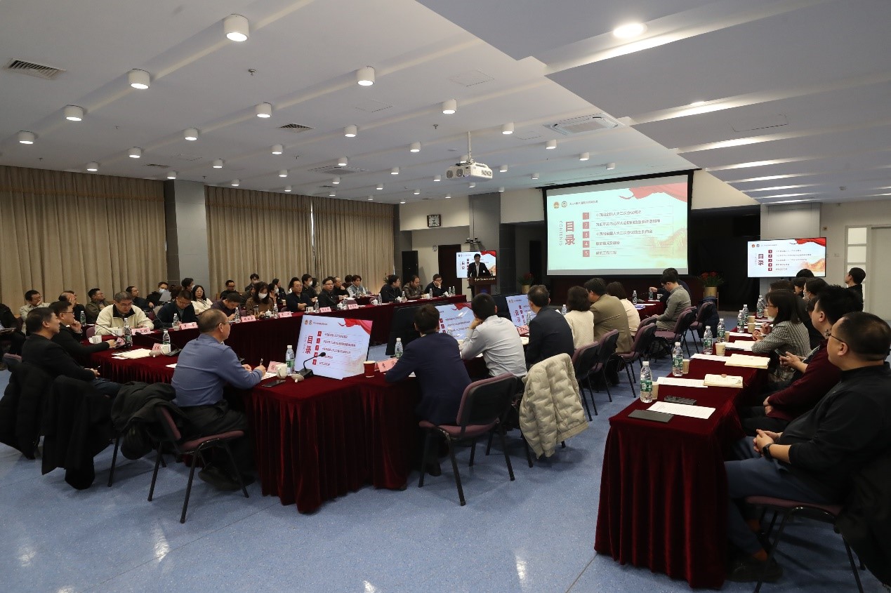 孫東明簡要介紹了2024年全國“兩會”概況,領學了習近平總書記的重要講話,闡釋了新質生產力的科學內涵,介紹了政府工作報告的亮點內容,分享了履職情況及履職感受。他表示,習近平總書記的重要講話,對做好當前和今后一個時期工作,具有重要的指導意義。作為來自科研一線的人大代表,要做好總書記重要講話精神和“兩會”精神的“傳播者”、“踐行者”,以科技創新賦能新質生產力,為高水平科技自立自強做出貢獻。