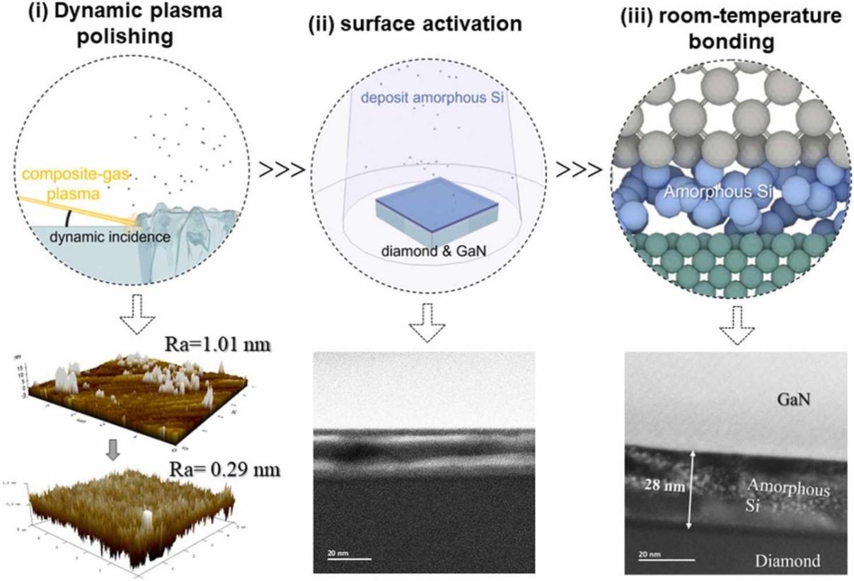 采用動態(tài)等離子體拋光技術(shù)和高真空表面活化鍵合技術(shù)實(shí)現(xiàn)厚膜GaN與多晶金剛石的常溫直接鍵合