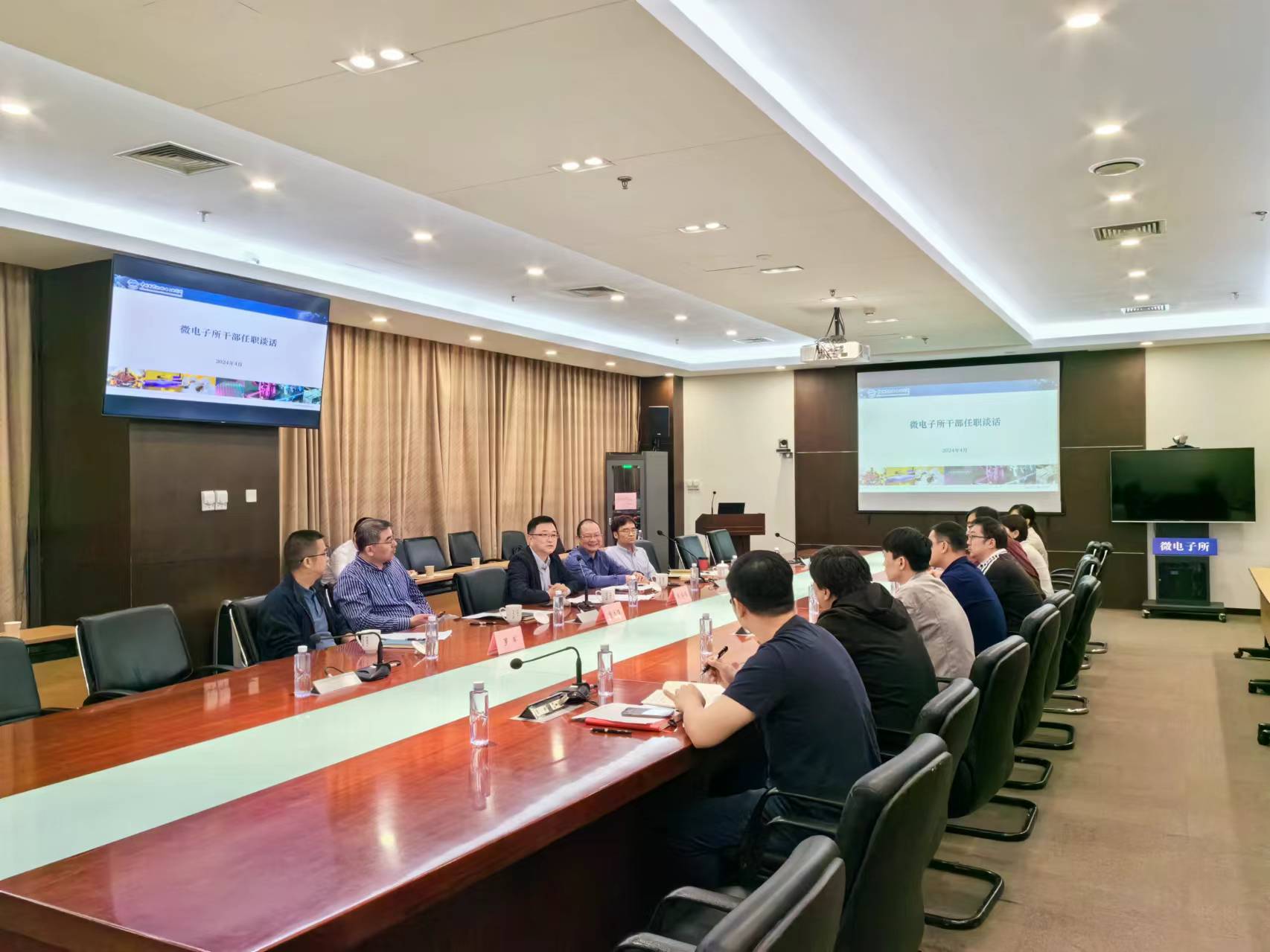 ????2024年4月25日,微電子所召開新聘用干部任職集體談話會議。所長、黨委書記戴博偉代表所領導班子對新聘用干部提出任職要求,黨委副書記、紀委書記謝光鋒為新聘用干部做廉政提醒,所領導班子成員出席會議,新聘用部門副職參加了會議。