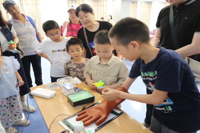 參觀者通過(guò)VR遨游在先導(dǎo)工藝研發(fā)中心超凈實(shí)驗(yàn)室,近距離觀察了各類(lèi)科研精密儀器設(shè)備。科學(xué)實(shí)驗(yàn)“諜戰(zhàn)傳奇”更是吸引了眾多青少年參與,親手制作簡(jiǎn)易無(wú)線電報(bào)機(jī),實(shí)現(xiàn)現(xiàn)場(chǎng)收發(fā)電報(bào),讓深?yuàn)W神秘的微電子科學(xué)變得“觸手可及”。