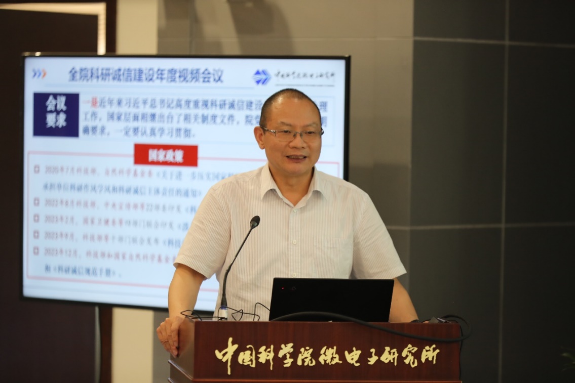 黨辦主任、科研道德委員會辦公室主任侯繼強(qiáng)作工作報(bào)告,匯報(bào)了我院及微電子所科研誠信建設(shè)工作機(jī)制,微電子所2024年度計(jì)劃及工作重點(diǎn),部署在全所開展科研原始記錄自查工作,提出了工作建議。紀(jì)委委員李俊峰領(lǐng)學(xué)《負(fù)責(zé)任研究行為規(guī)范指引(2023)》和《科研誠信規(guī)范手冊》,結(jié)合科研工作實(shí)際作重點(diǎn)內(nèi)容解讀。