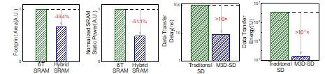 圖2 混合IGZO/Si 4T SRAM與傳統(tǒng)6T SRAM在面積和能耗上的對比;