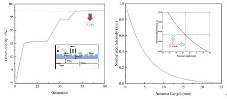 FMCW激光測量技術(shù)作為一種具有測距測速一體、探測精度高、抗干擾能力強的新型激光測量技術(shù),團隊從調(diào)頻、發(fā)射、掃描、探測和處理等角度凝練主要關(guān)鍵技術(shù),梳理片上集成FMCW激光雷達在相關(guān)領(lǐng)域的應(yīng)用前景和典型系統(tǒng)示例,展望片上集成FMCW激光雷達面臨的潛在挑戰(zhàn)及發(fā)展趨勢。團隊博士研究生袁野聚焦關(guān)鍵技術(shù)解決方案,開展一系列研究工作,首先針對光學(xué)相控陣(Optical Phased Array,OPA)遠場光斑發(fā)散、發(fā)射損耗較大、掃描視場受限等問題,提出一種新型的氮化硅-硅雙層叉指波導(dǎo)光柵天線陣列。針對非均勻OPA峰值旁瓣水平隨著掃描角度的增大而減小的問題,提出一種基于混沌序列的雙重自適應(yīng)度遺傳算法優(yōu)化天線陣列。相關(guān)工作發(fā)表在“Applied Optics:Novel interdigital waveguide grating antenna array for optical phased array”、“Optics and Lasers in Engineering:Non-uniform optical phased array based on dual-adaption genetic algorithm improved by chaos sequence”等期刊中,微電子所袁野博士為第一作者,朱精果研究員為通信作者。