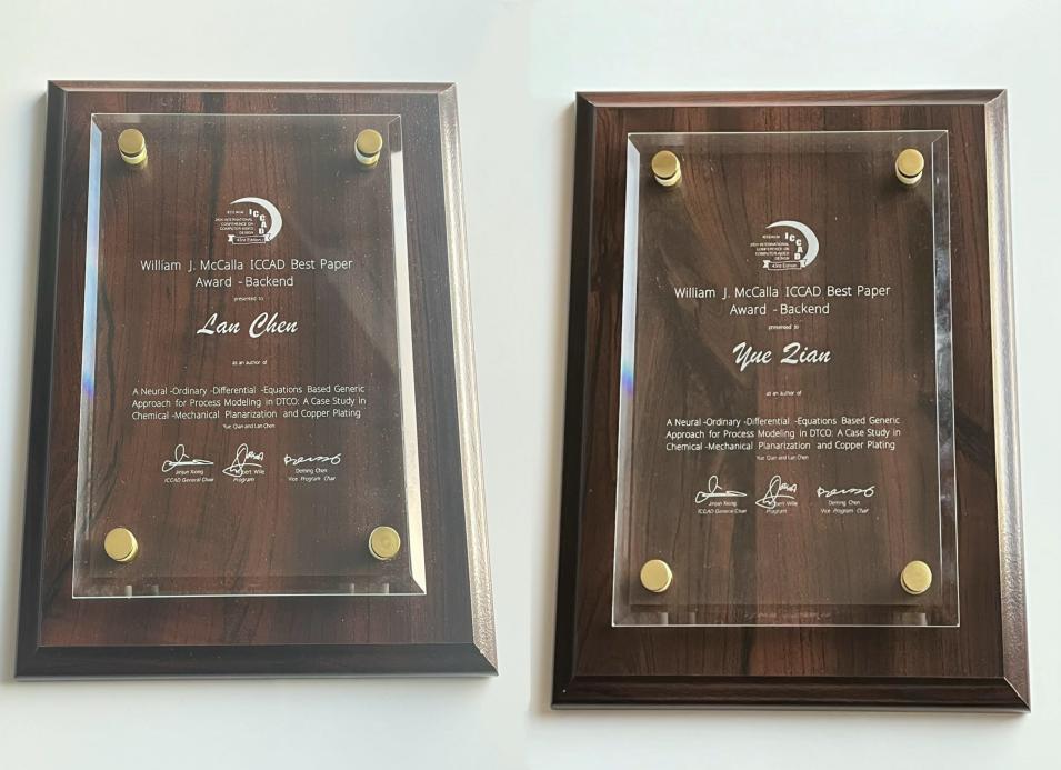 上述研究成果以“A Neural-Ordinary-Differential-Equations Based Generic Approach for Process Modeling in DTCO: A Case Study in Chemical-Mechanical Planarization and Copper Plating”為題發表在2024 ACM/IEEE ICCAD會議上,并獲得大會“William J. McCalla最佳論文獎(后端部分)”,微電子所博士研究生錢躍為該文章第一作者,陳嵐研究員為該文章通訊作者。這是微電子所首次在該會議上發表文章,也是中國大陸首次獲得 ICCAD William J. McCalla最佳論文獎。