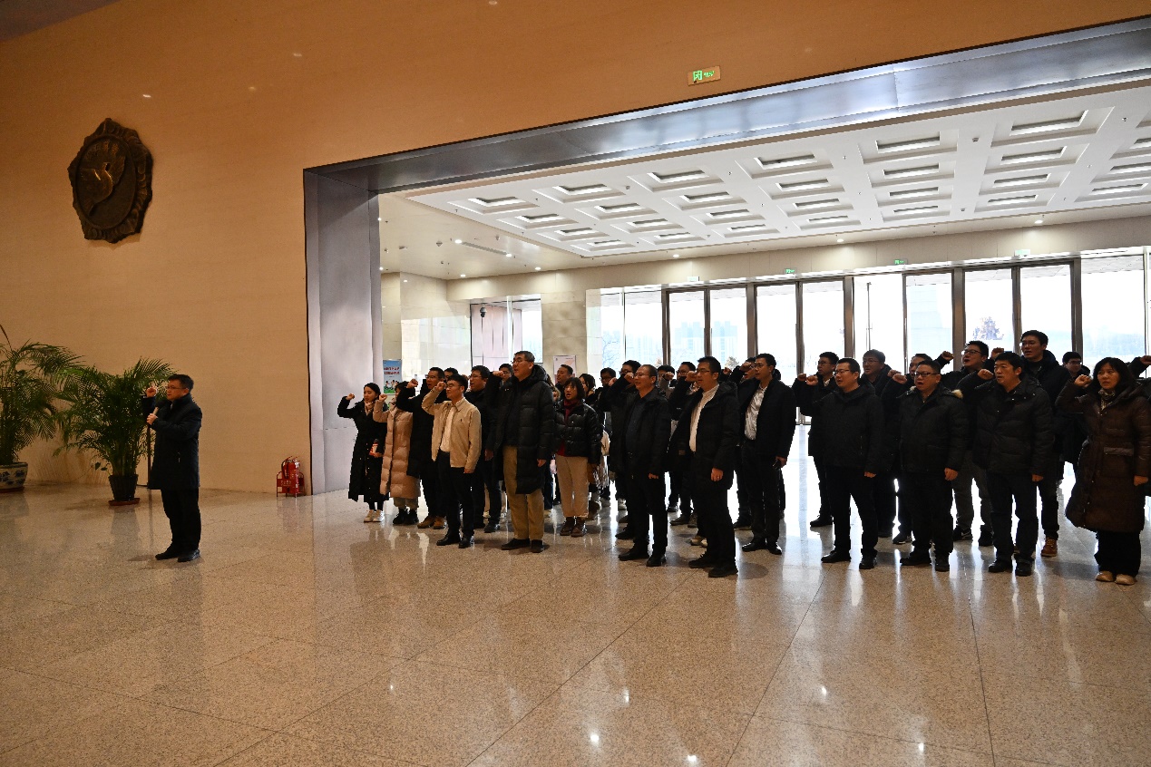 活動中,大家懷著崇敬與莊嚴的心情,向抗美援朝烈士雕像敬獻花籃。在戴博偉書記的帶領下,大家面對鮮紅的黨旗莊嚴宣誓,表達了為黨的科技事業奮斗終身的決心和愿望。大家認真聆聽了講解員的細致解說,深入了解抗美援朝戰爭的歷史背景、戰斗歷程以及戰爭所取得的偉大勝利對新中國發展的深遠意義。一幅幅珍貴的歷史照片、一件件歷經滄桑的實物、一段段震撼人心的影像資料,生動地再現了那段波瀾壯闊、可歌可泣的抗美援朝戰爭歲月。每一個戰斗故事、每一位英雄烈士的事跡,都深深觸動著在場每個人的心靈,大家深刻感受到了他們為了祖國和人民,不畏強敵、英勇斗爭的崇高精神風貌。