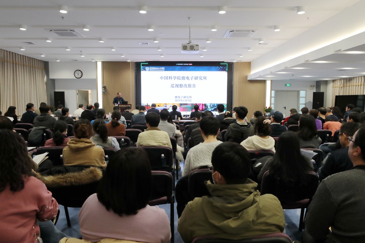 1月9日,微電子所召開巡視整改情況通報暨滿意度測評大會。所領導班子成員,黨委委員,紀委委員,科研單元負責人,黨總支、黨支部以及職代會、工會、團委、婦委會、學生會等群團組織負責人,副高及以上專業技術職務人員、六級及以上職員等400余人參加會議。