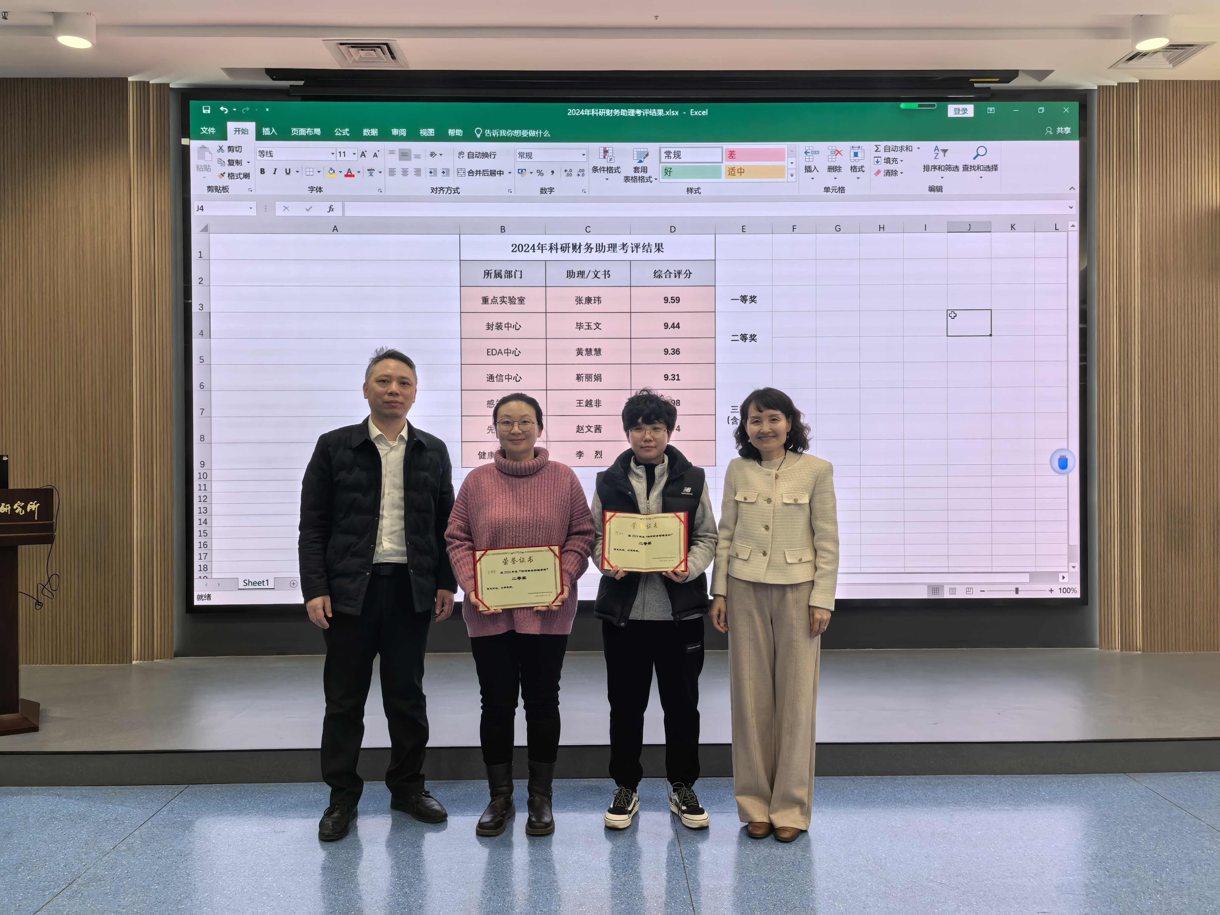 根據科研財務助理考評方案,會議推選產生“微電子所2024年度優秀科研財務助理”7名,分別是一等獎:張康瑋(重點實驗室);二等獎:畢玉文(封裝中心)、黃慧慧(EDA中心);三等獎:靳麗娟(通信中心)、王越非(感知中心)、李烈(健康電子中心)、趙文茜(先導中心)。