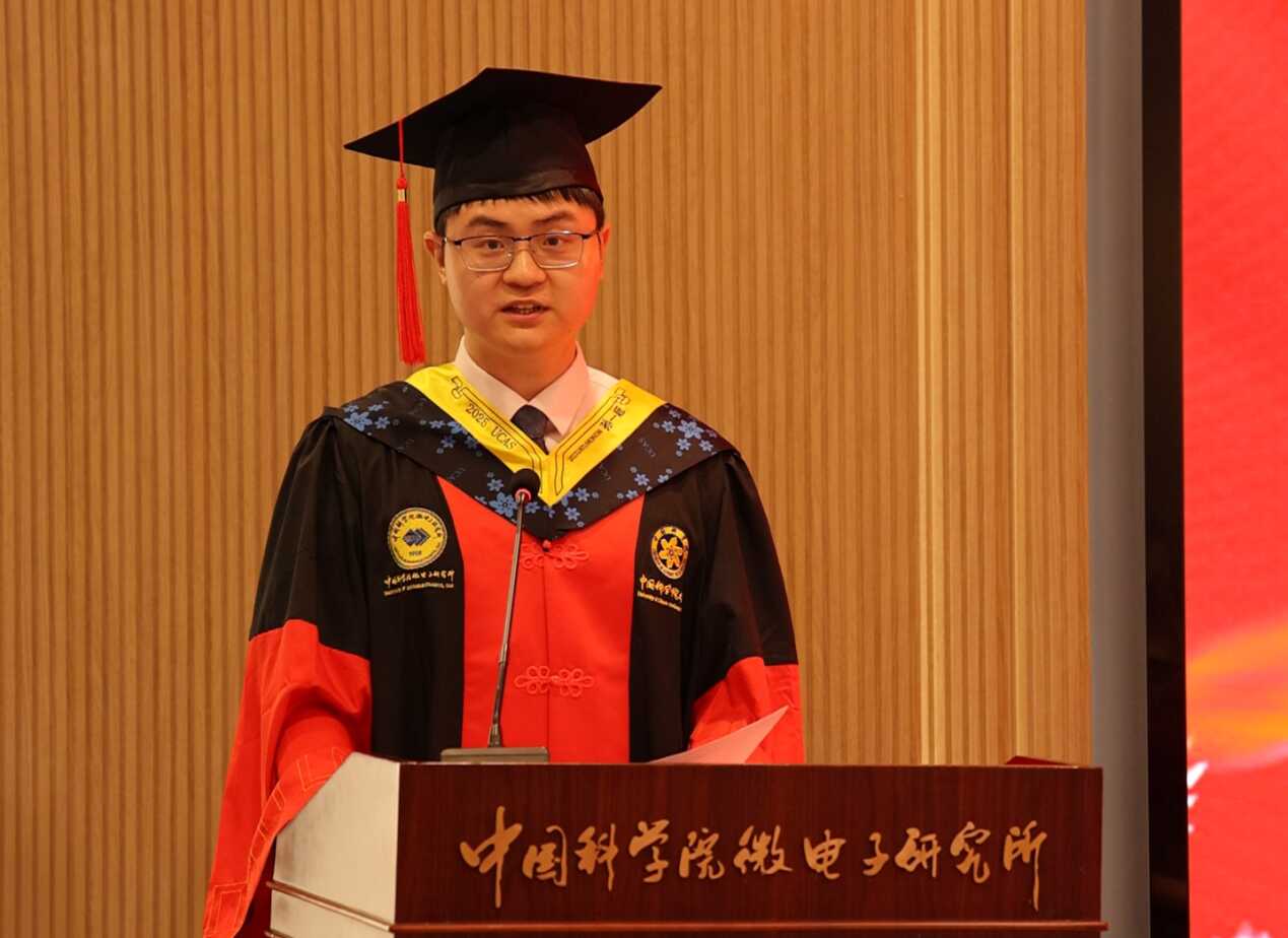 ????戴博偉代表研究所向2025屆畢業生們表示熱烈祝賀和誠摯祝福,他高度肯定了畢業生們在自我突破中取得的多項成績,殷切期盼同學們能夠傳承科技報國精神,繼續書寫人生璀璨的篇章。微電子所和集成電路學院永遠是大家最堅強的后盾。