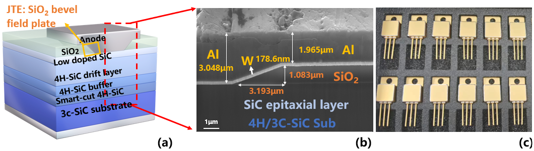 圖2??4H/3C - SiC肖特基勢(shì)壘二極管及橫截面示意圖