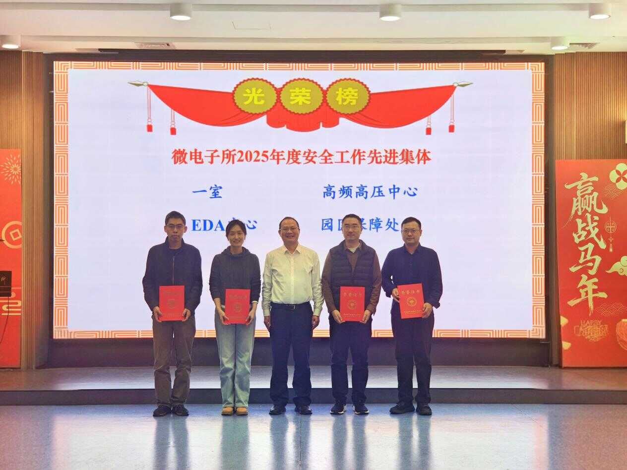 會議通報了2025年12月至2026年1月全所安全工作推進情況、實驗室安全專項檢查情況,傳達了《微電子研究所關于做好2026年春節(jié)期間安全穩(wěn)定工作的通知》,表彰了2025年度安全先進集體、先進個人、優(yōu)秀干部。各部門結(jié)合工作實際,分別匯報了近期安全工作落實、隱患排查整改成效及春節(jié)假期安全防控工作安排。