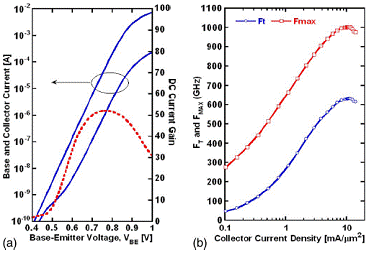 InP基太赫茲晶體管的(a)直流與(b)高頻特性