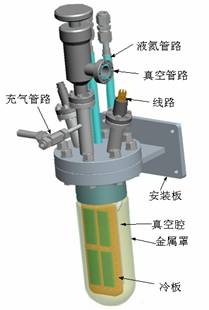 該低溫測試系統由一室可靠性測試小組的劉剛、畢津順、曾傳濱等科研人員自行設計完成,其極限真空<10-7Pa,12小時靜態漏氣<0.1Pa,氣體充氣能力為1Pa—1MPa,液氮溫度連續實驗時間>5小時。