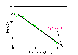 研究小組首先采用微機械剝離法得到幾百平方微米的大面積石墨烯材料,在此基礎上,創新的采用了具有自主知識產權的復合柵介質結構,開發了細柵條器件工藝,解決了器件制備中的關鍵工藝問題,開發出完整的石墨烯器件工藝流程,實現了石墨烯電子器件的制備,如圖1(a)所示。測試數據表明,器件最高截止頻率達到18GHz(圖1(b)所示),達到國內石墨烯電子器件的最高水平。