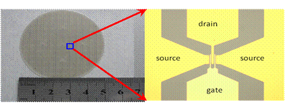 圖2(a) . 采用SiC外延生長法制備晶圓級石墨烯電子器件照片