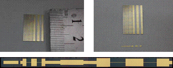 為了解決太赫茲頻段下外圍電路損耗高的問題,研究人員開發(fā)出器件與電路襯底背面減薄技術(shù),并采用低介電常數(shù)石英材料實(shí)現(xiàn)了太赫茲電路,研制出厚度小于50um,可應(yīng)用于太赫茲頻段核心電路(見圖3),極大地減小了在太赫茲頻段的損耗,提高了電路模塊的效率。