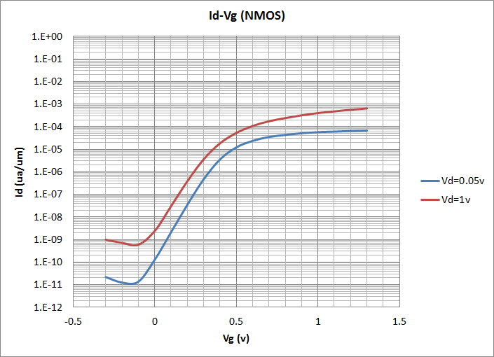 圖2 NMOS的Id-Vg轉(zhuǎn)移曲線以及Id-Vd輸出曲線(中科院微電子研究所,2012)