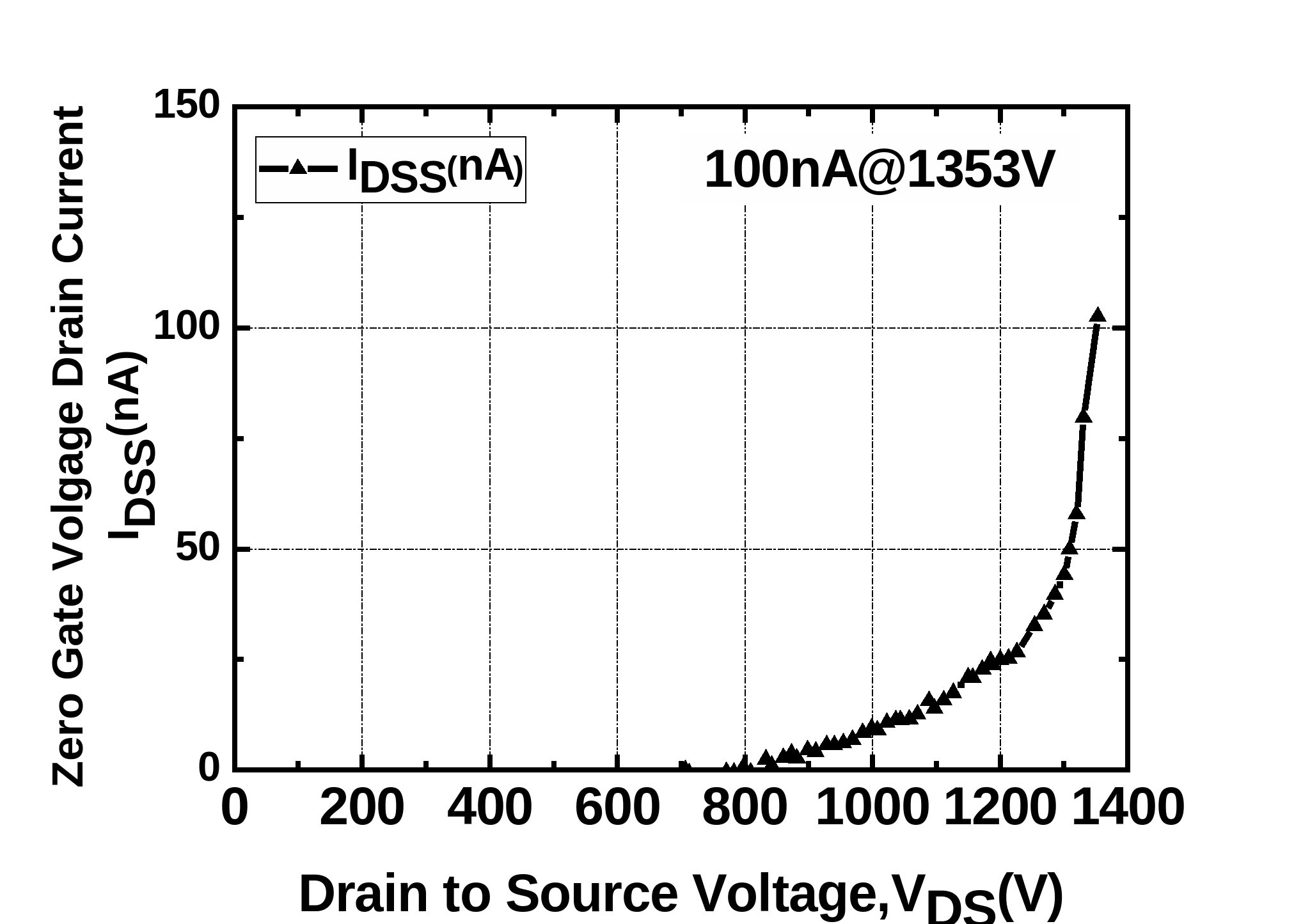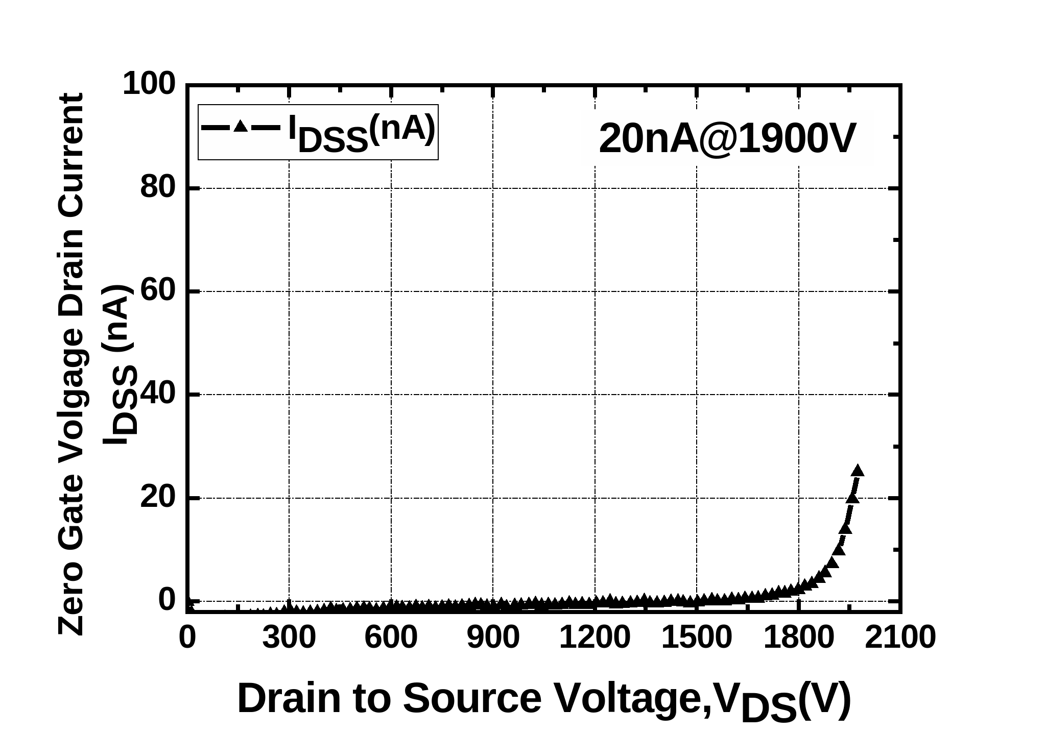 碳化硅電力電子器件研究團隊基于微電子所4英寸硅工藝平臺,對SiC MOS界面態(tài)來源與調(diào)控機理等開展了深入研究,開發(fā)了SiC柵氧化和氮化的柵介質(zhì)工藝,將MOS柵電容的CV平帶電壓從3V左右降低到小于0.2V,成功研制出1200V和1700V SiC MOSFET器件(如圖1所示)。圖2所示為1200V/15A SiC MOSFET器件,輸出電流在VDS=10V,VGS=22V時為10A,在VDS=20V時達到15A,反向耐壓在漏電流為100nA時為1353V。圖3所示為1700V/8A SiC MOSFET器件,輸出在VDS=5V,VGS=22V時為5A,在VDS=13V時達到8A,反向耐壓在漏電流為20nA時可達1900V。SiC MOSFET器件的成功研制為更高性能及IGBT等新型結(jié)構(gòu)碳化硅電力電子器件的研發(fā)奠定了扎實基礎。