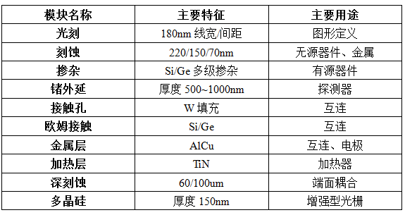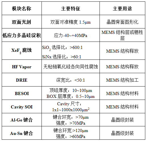 MEMS工藝平臺所能對外提供的標準工藝模塊服務能力